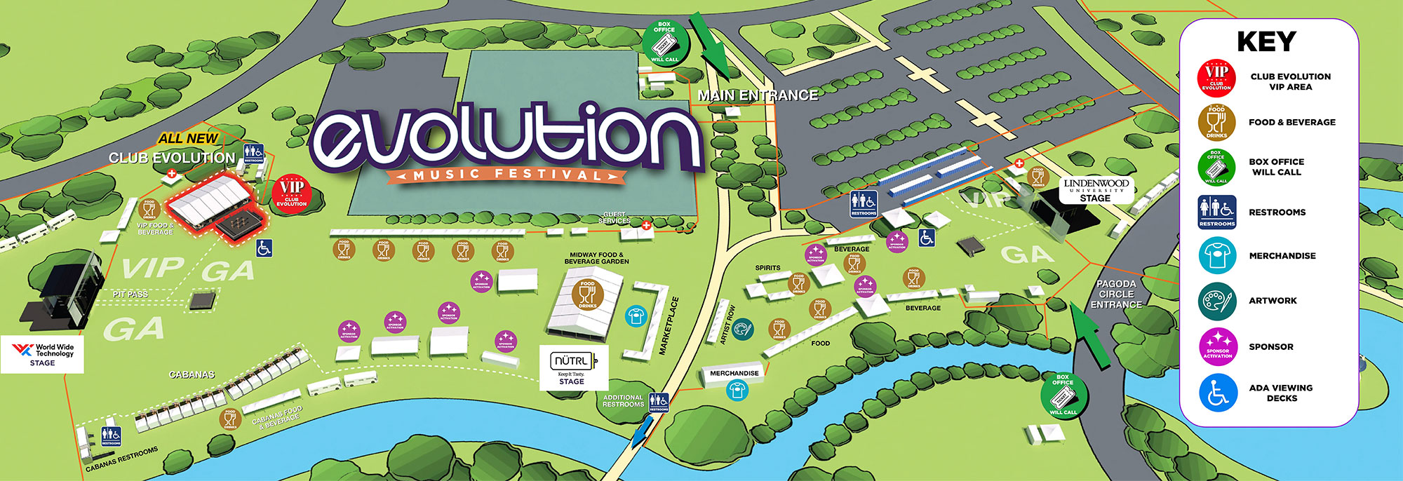 Evolution Festival is an accessible event, and we are dedicated to continually improving our efforts to ensure you have access to all the event amenities.